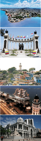 Guayaquil, (oficialmente Santiago de Guayaquil) es la ciudad más poblada y la más grande de la República del Ecuador; con una población en suárea metropolitana cercana a los 3.113.725 habitantes. El área urbana de Guayaquil también conocido como Gran Guayaquil, se alinea entre las ciudades más grandes de Latino américa. Es además un importante centro de comercio con influencia a nivel regional en el ámbito comercial, financiero, político , cultural y de entretenimiento La ciudad es la la capital de la provincia del Guayas. Localizada en la costa del Pacífico en la región litoral del Ecuador, el este de la ciudad está a orillas del Río Guayas, a unos 20 kilómetros de su desembocadura en el Océano Pacífico, mientras está rodeada por el Estero Salado en su parte suroccidental y el inicio de la Cordillera Chongon - Colonche, una cadena de montañas de media altitud, en el noroeste. El Golfo de Guayaquil es la entrante de agua más grande del Océano Pacífico en Sudamerica. Santiago de Guayaquil se destaca entre lasCiudades Ecuatorianass por su elevado uso de tránsito masivoy por su densidad total y la diversidad de su población. El puerto de la ciudad es uno de los más importantes de la costa del Pacífico oriental. El 70% de las Exportaciones privadas del país sale por sus instalaciones, ingresando el 83% de las Importaciones Además, por su posición de centro comercial, tradicionalmente se conoce a la ciudad como la "capital económica del país", debido a la cantidad de Empresas, Fábricas y locales comerciales que existen en la Ciudad. |